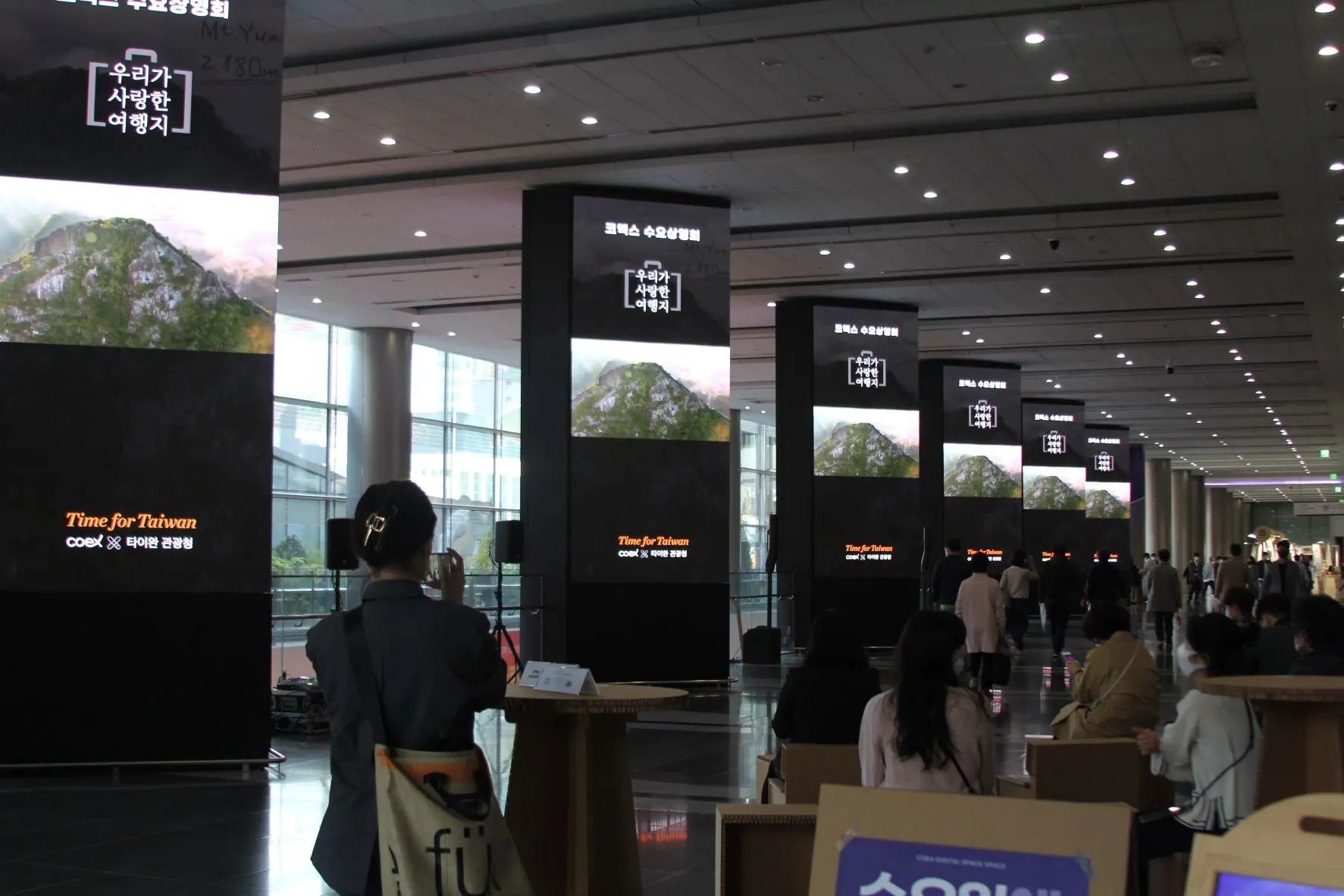 매일매일 반복되는 하루에 새로운 감성을 채워줄 영상을 송출하는 행사예요. 엣지칼럼 앞에 놓인 의자에 앉아 자유롭게 관람하며 똑같이 흘러가는 점심시간을 코엑스 수요상영회를 통해 극복해보아요!