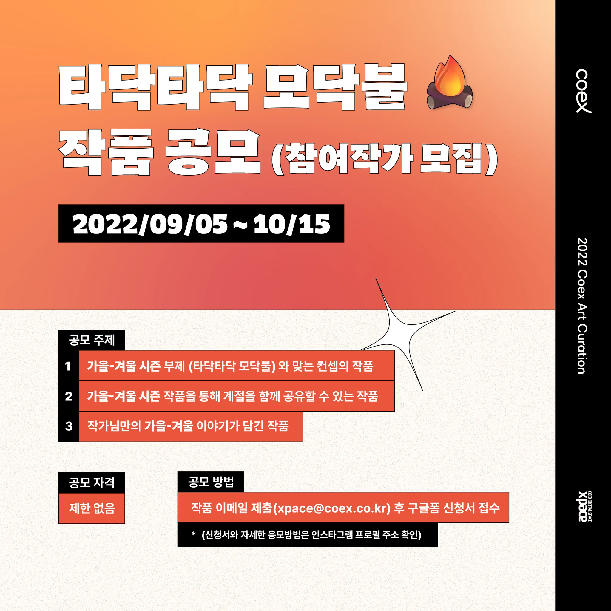 국내외 활동하는 신진 작가를 발굴하고자 시작한 프로젝트로, 코엑스가 시즌별 큐레이션 주제를 선정하고 작가님들을 모십니다.